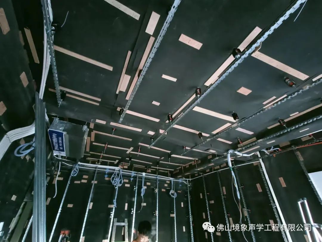 通过计算混响,控制整个房间的吸声量,不能使房间内的声音过于干涩,所以天花是做刮腻子的处理。然后加上扩散体,当声音到达天花后,可以均匀地分布到整个房间内,更是避免了驻波的产生。